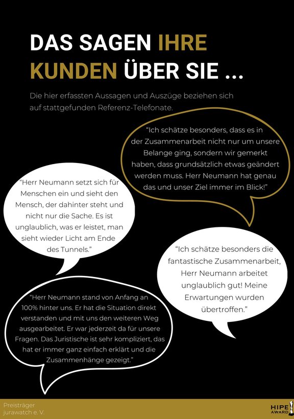 Mit der Zertifizierung beim HIPE AWARD wird von dritter Seite über unser Leistungs-Angebot gesprochen und Ihnen hoffentlich so neutrale Entscheidungs-Hilfe gegeben.