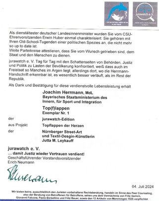 Bayerns Justizminister Georg Eisenreich schweigt dazu nur und der jetzige Behördenleiter wendet NS-Methodik – die Sippenhaft – an: löscht die gesamte Honoratiorenliste und begeht den nächsten Fauxpas, in dem er einen Antisemitismus-Beauftragten einsetzt, also Antiziganismus und das Schicksal der vielen weiteren Minderheiten negiert.